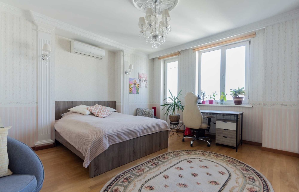 • Комфорт Кондиционер, Подогрев полов, Ванна, Душевая кабина, Мебель на кухне, Панорамные окна, Видеонаблюдение, Охраняемая территория, Лифт