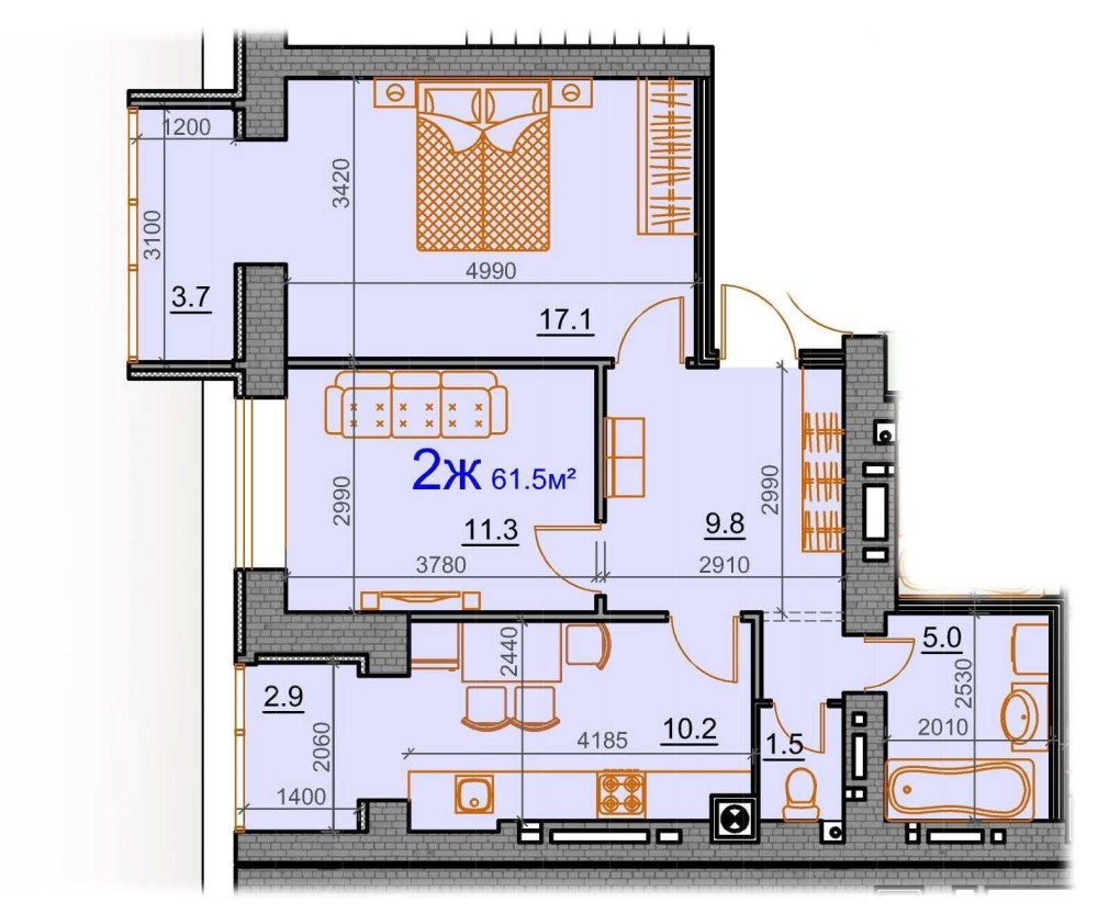 • Загальна площа 61.5 м2