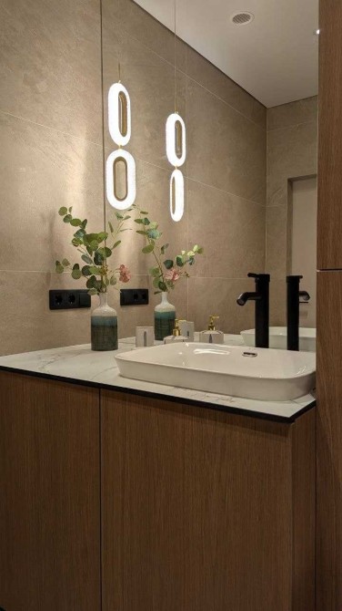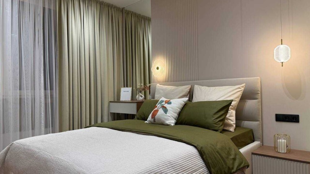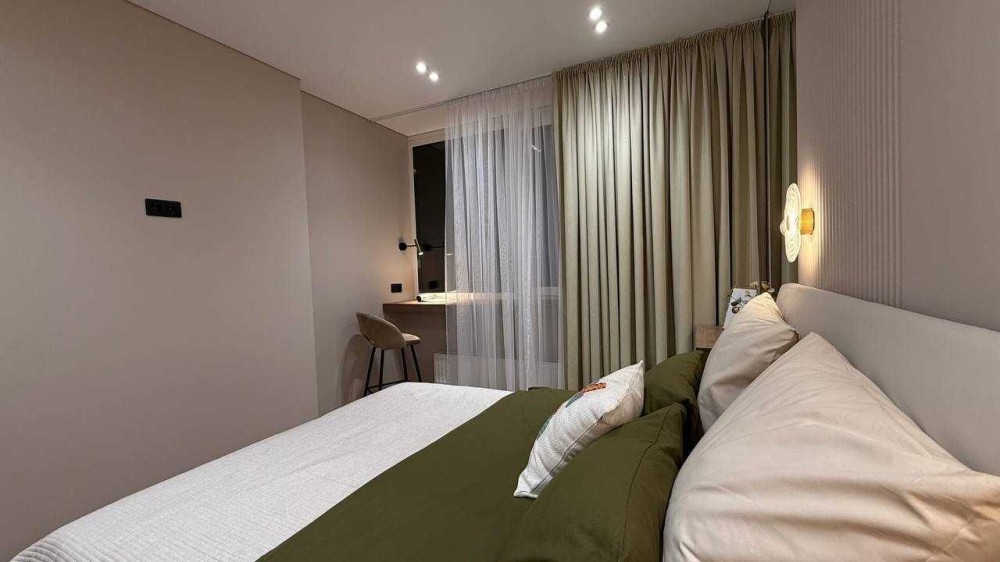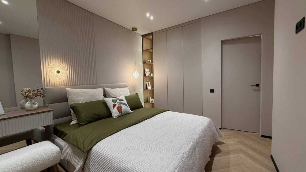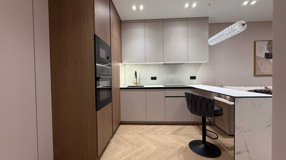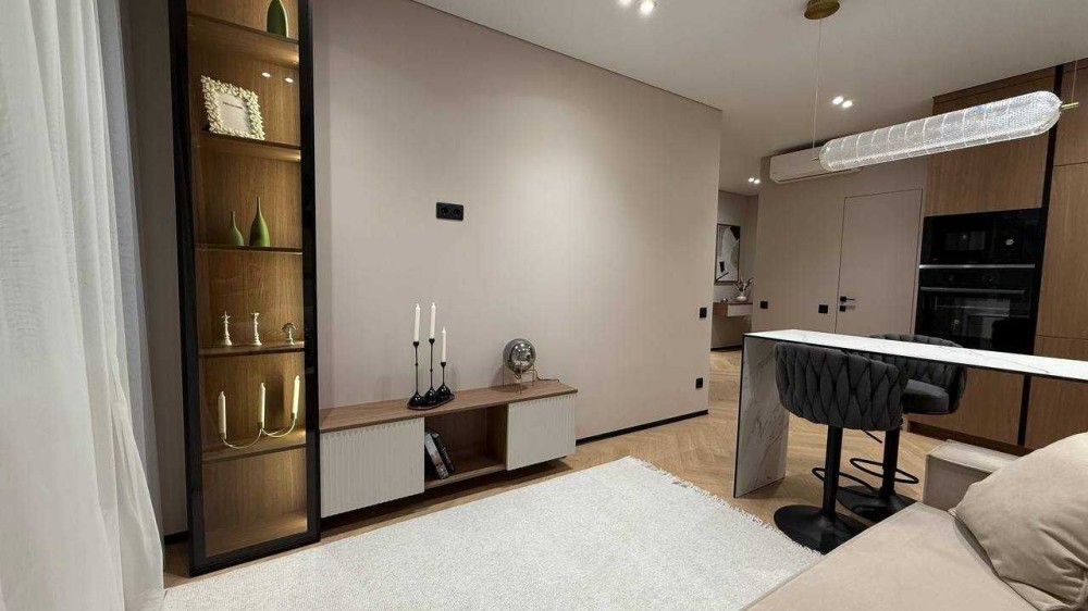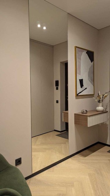 В квартирі встановлені меблі по індивідуальному замовленню. Сучасний ремонт виконаний у теплій кольоровій гаммі. Багато шаф, дзеркал, міст зберігання, якісна кухня. Тепла підлога і тепла стіна для сушіння рушників у ванній кімнаті. Є відеодомофон для безпеки і зручності.