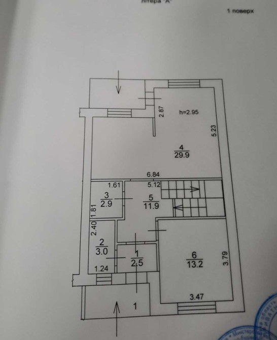 3 кімнати + кабінет на 1-му поверсі