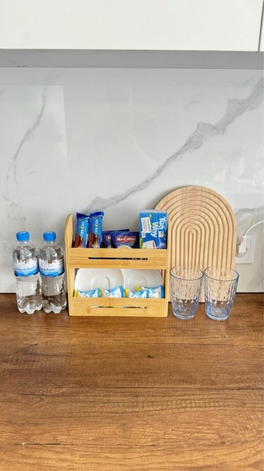 Є посуд для приготування їжі, пилосос, розкладна сушилка для одягу.