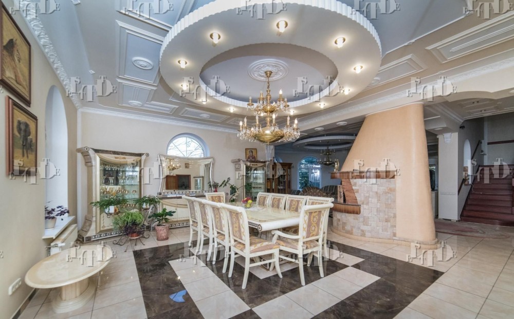 В будинку вітальня з великим авторським каміном, столовою зоню, окрема кухня, декілька спальних кімнат, зони відпочинку, баунти-лаунж, є сауна, басейн, на кожному поверсі ванні кімнати та с/в.
