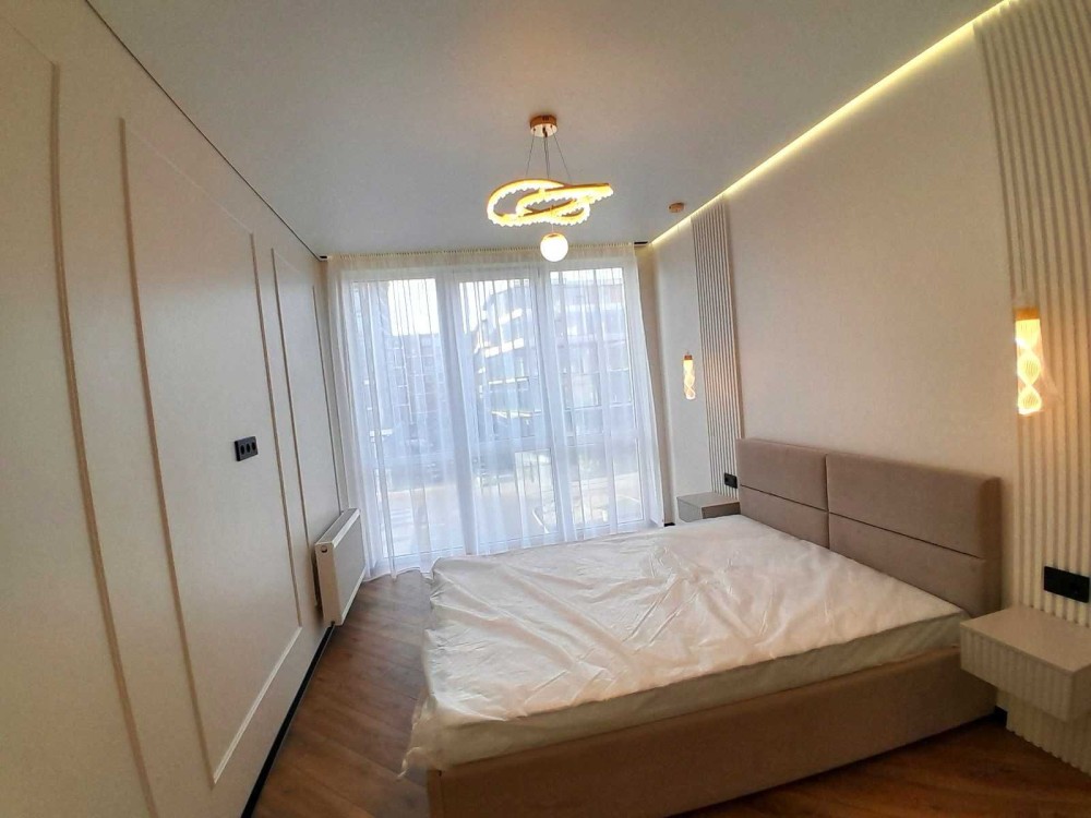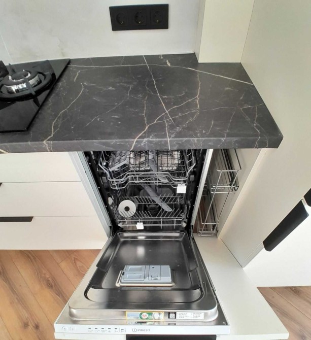 - Кухонні меблі, та техніка (холодильник, посудомийка, витяжка, газова поверхня, електрична духова шафа, та мікрохвильова плита) . В спальні ліжко та приліжкові тумби.