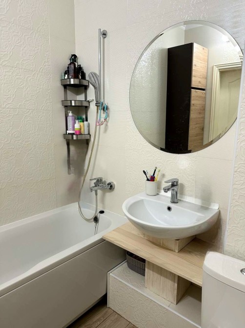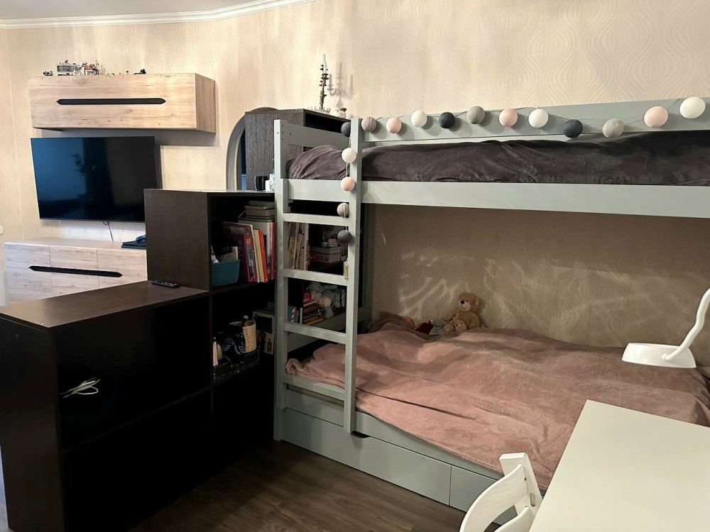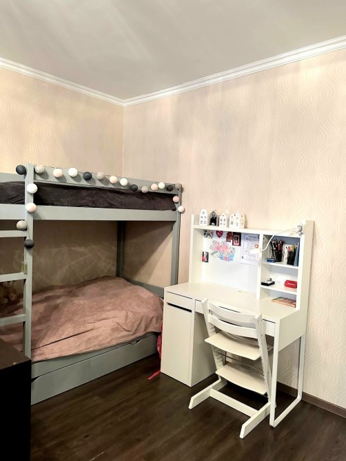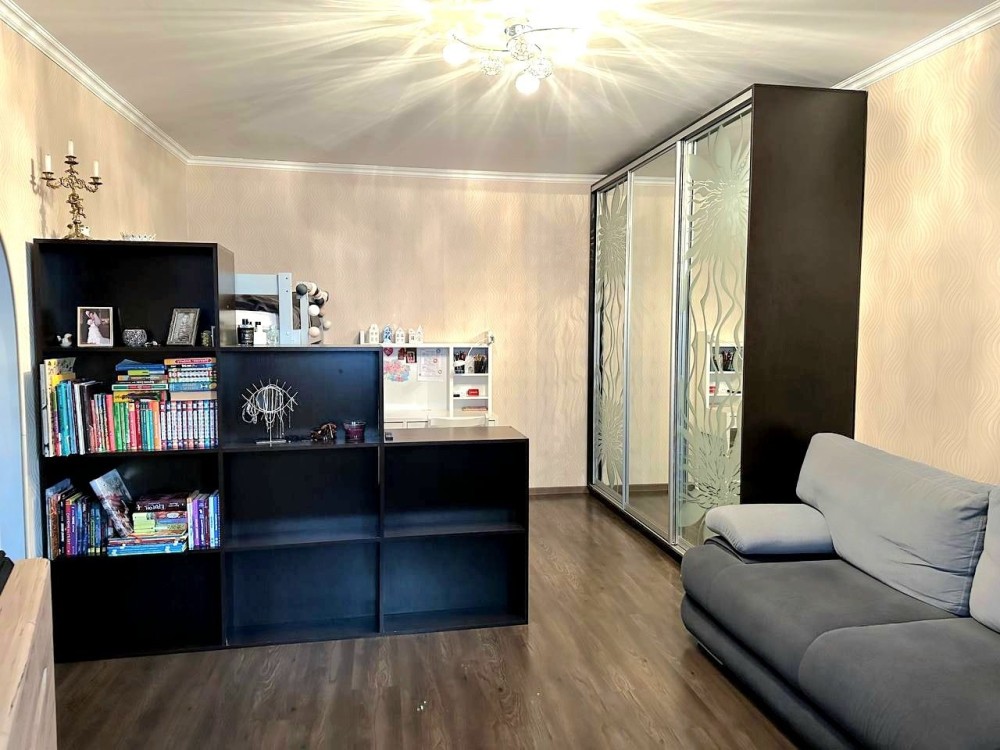 Квартира має простору спальну кімнату, з виходом на лоджію, де організована робоча зона встановоено кондиціонер, , простора кухня , санвузол та ванна кімната суміжні, просторий коридор, комора з якої можна зробити гардеробну кімнату.