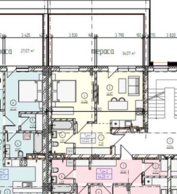 • зручне планування: простора кухня-студія з виходом на терасу, спальня також з виходом на терасу, суміжний санвузол, коридор.