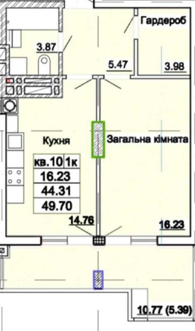 • Площа кухні 14.76 м2