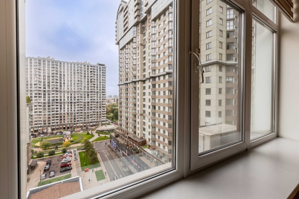 - Кухня-вітальня з панорамними вікнами й виходом на балкон