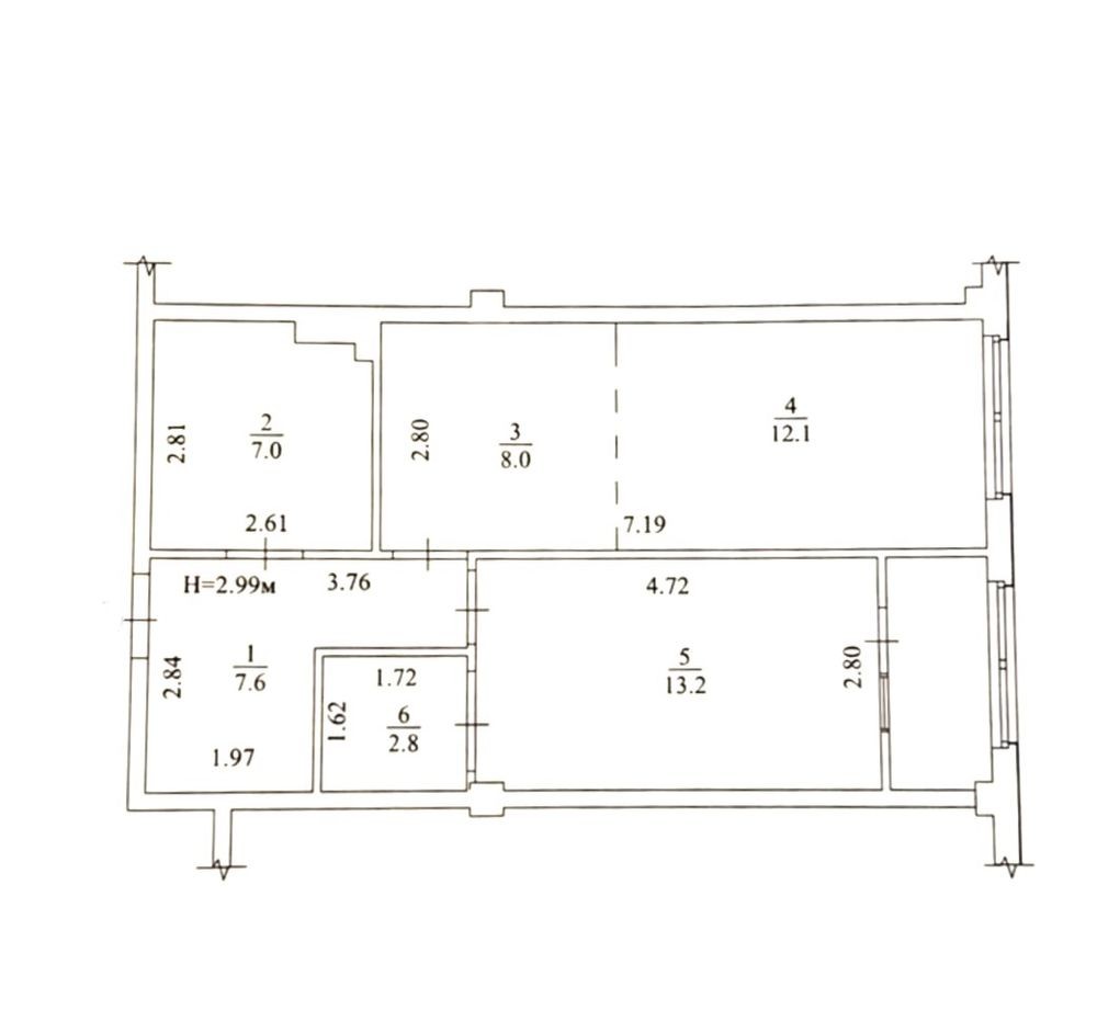 Квартира знаходиться на третьому поверсі п’ятиповерхового будинку. Має загальну площу 55 м², житлову 26