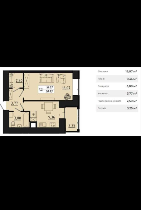 • Загальна площа 38.83 м2