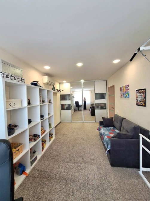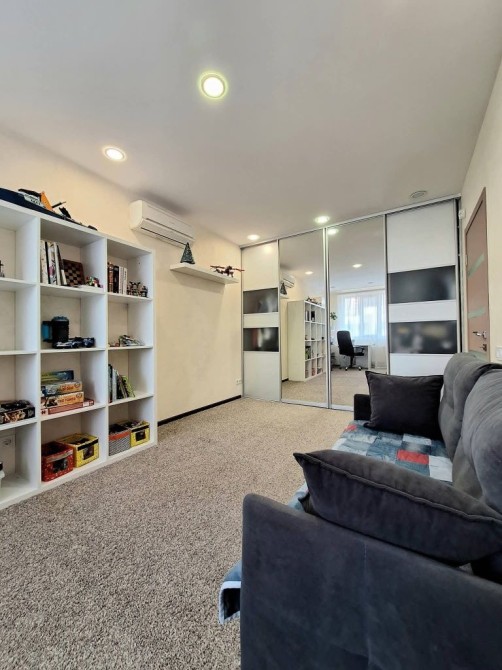 Пропонується дворівнева квартира з терасою та видом на Дніпро ЖК Seven Осокорки — унікальний варіант для тих, хто цінує простір, комфорт і панорамні краєвиди столиці. Квартира розташована на 25–26 поверхах 26-поверхового будинку за адресою: Дніпровська набережна, 20А. Загальна площа — 139 м2, житлова — 63 м2. Це простір, створений для великої та щасливої родини. Перший рівень: – просторий хол — 9 м2; – кухня-вітальня — 44 м2 із панорамними вікнами від підлоги до стелі, звідки відкривається захопливий вид на Дніпро; – гостьовий санвузол — 1, 5 м2. Другий рівень: – три спальні: 10, 5 м2, 18 м2 та 23 м2 — кожна з виходом на терасу; – гардеробна — 8 м2; – просторий санвузол — 8, 8 м2; – головна перевага — тераса 35 м2 з панорамним видом на Дніпро та зелені пагорби Києва. Це місце для ранкової кави, вечірніх посиденьок і затишних зустрічей. Квартира світла, сонячна, з великими вікнами та сучасним плануванням. Інфраструктура ЖК Seven: Комплекс закритого типу з цілодобовою охороною та підземним паркінгом. Усередині — затишний двір із дитячими та спортивними майданчиками, зеленою зоною та доріжками для прогулянок. У пішій доступності: ТЦ River Mall, ТЦ Аркадія, супермаркети Novus і Сільпо, ресторани, набережна Дніпра. Зручна транспортна розв’язка та близькість метро Осокорки роблять локацію ще привабливішою. Чому варто обрати саме цю квартиру? – дворівневе планування з чітким розділенням на зони; – простора кухня-вітальня для зустрічей і свят; – велика тераса з панорамою на Дніпро й Київ; – сучасний ЖК з продуманою інфраструктурою. Дворівнева квартира з терасою та видом на Дніпро ЖК Seven Осокорки – не просто квадратні метри — це простір для життя, відпочинку й натхнення. Не втрачайте шанс — такі квартири в ЖК Seven з’являються рідко!