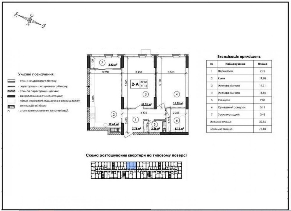 • Загальна площа 71.18 м2