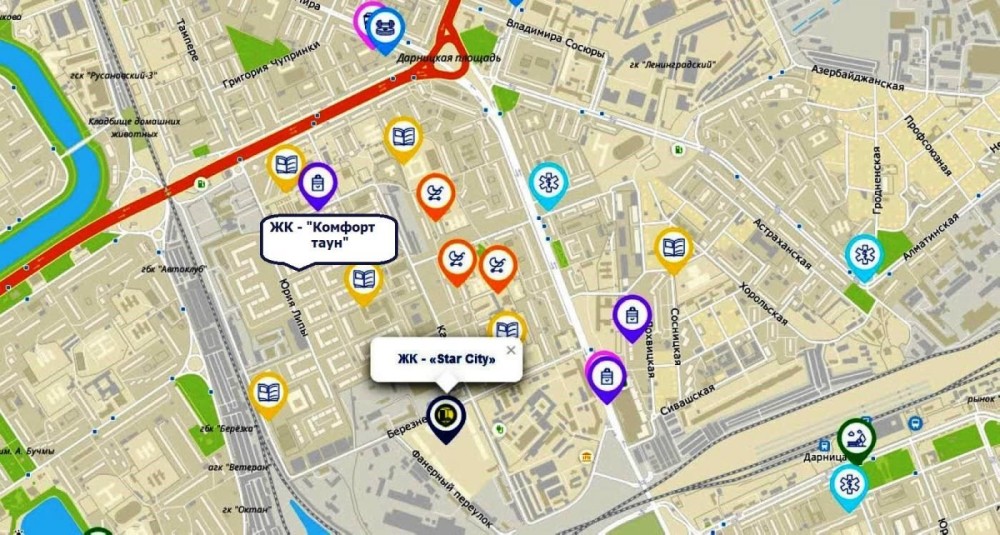 за буд. адресою: Каунаська 27 у Дніпровському р-ні м.Києва. Поруч з ЖК