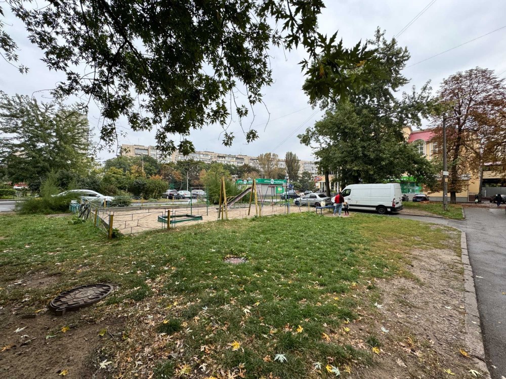 Перед будинком дит. майданчик, зупинка громадського транспорту та супермаркет Сільпо.