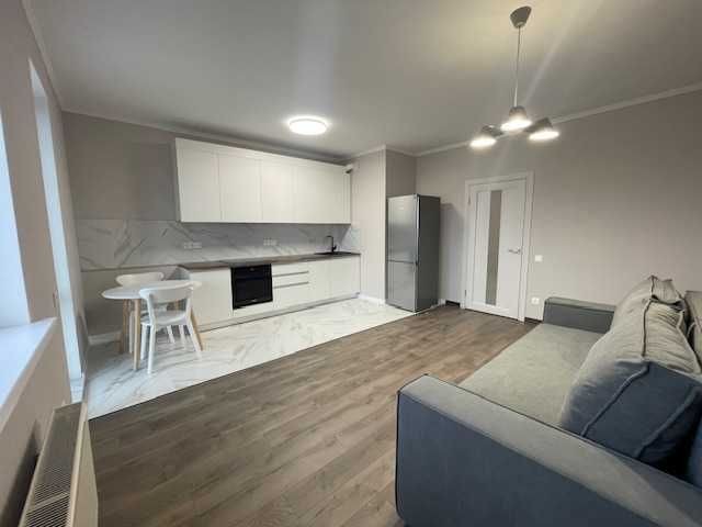 Оренда стильної 1 к кв з кухнею студією в новому будинку ЖК "Файна Таун" в Шевченківському районі, вул. Салютна, 2 Квартира 43 м2 , розташована на четвертому поверсі та складається з передпокою, спальні, великої кухні -студії та санвузла. Вікна квартири виходять в двір. Облаштована всіма необхідними меблями з екологічно чистої деревини та оснащена побутовою технікою: телевізор Samsung Smart 43, кондиціонери в кухні та кімнаті, плита індукційна, вбудований холодильник, духова шафа з функцією мікрохвильової печі, пральна машина з сушаркою. В кухні та ванній кімнаті тепла підлога, високошвидкісний інтернет. ЖК "Файна Таун" це: закрита територія з входом по картці, цілодобова охорона, відеоспостереження, паркінг, підземні контейнери для сміття, зарядні станції для електромобілів та лавки з інтегрованими батареями для підзарядки девайсів, розумне освітлення, яке підлаштовується під час доби та ще багато чого для того, щоб жити з комфортом й ні в чому себе не обмежувати) розповім при перегляді. Зручне транспортне сполучення та розвинута інфраструктура: магазини,спортивні та пішохідні зони ,зона барбекю, ресторани та кафе. Квартира, в якій поєднані комфорт та затишок, шукає своїх порядних орендарів молоду пару або одну людину без дітей та тварин. Перша оренда, квартира вільна.