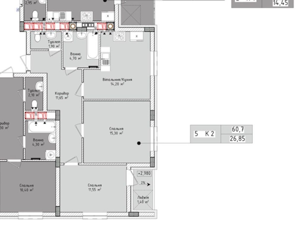 • Загальна площа 61 м2