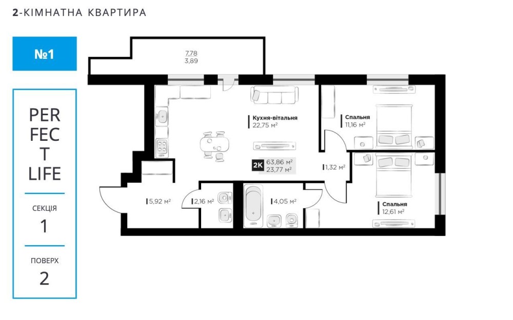 • Загальна площа 63.86 м2