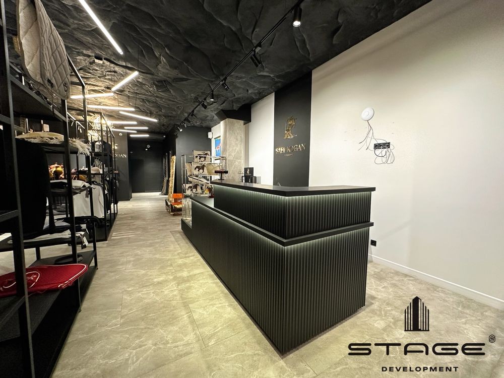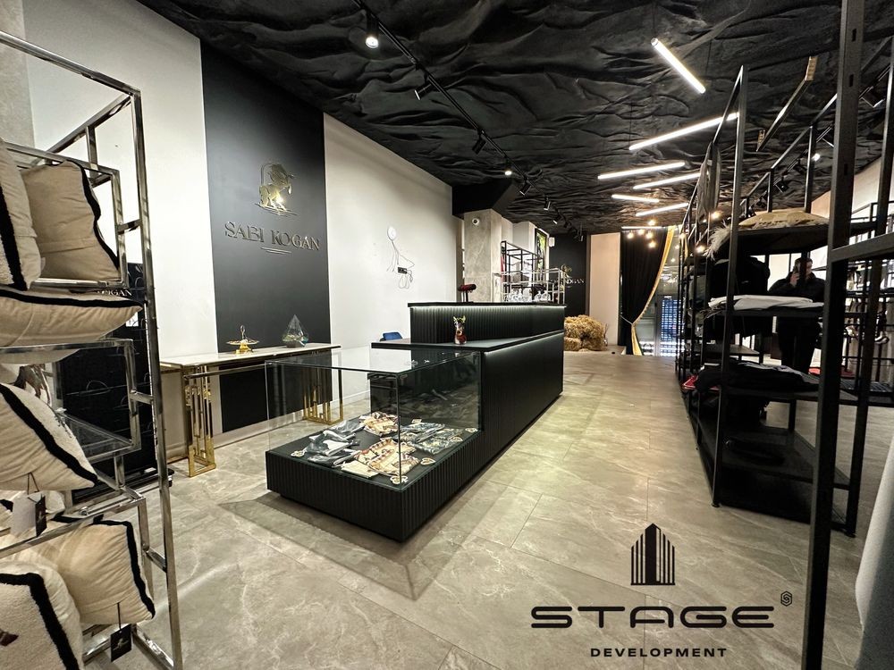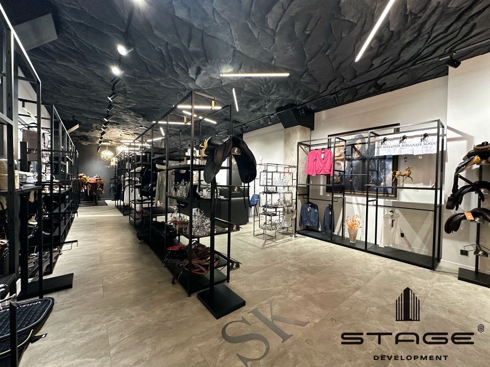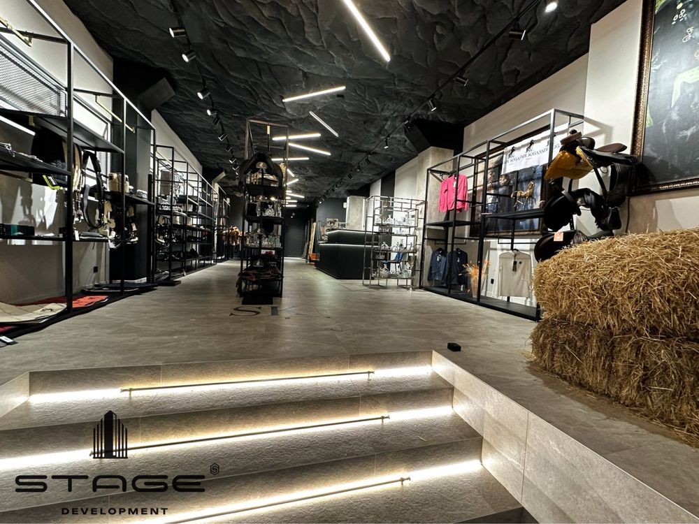 Красивый фасад, есть место для парковки. Большой зал, две примерочные, санузел, подсобная комната, склад. Высокие потолки. Сделан стильный дизайнерский ремонт, стеллажи, стойка для кассира, встроенная акустическая система, генератор, видеонаблюдение, роллетная система безопасности.