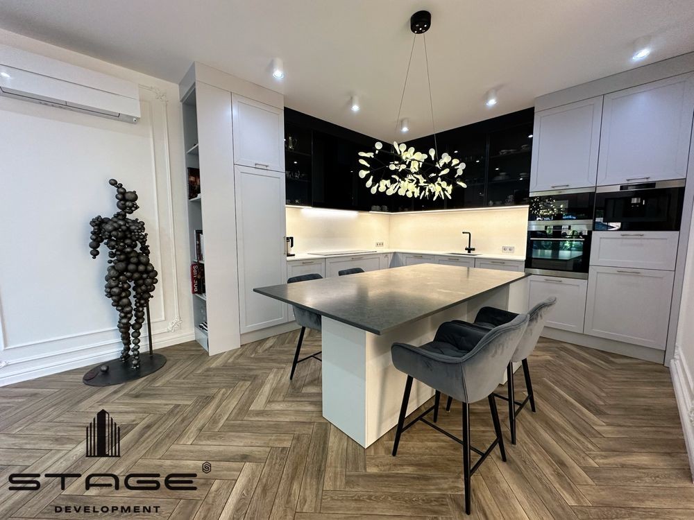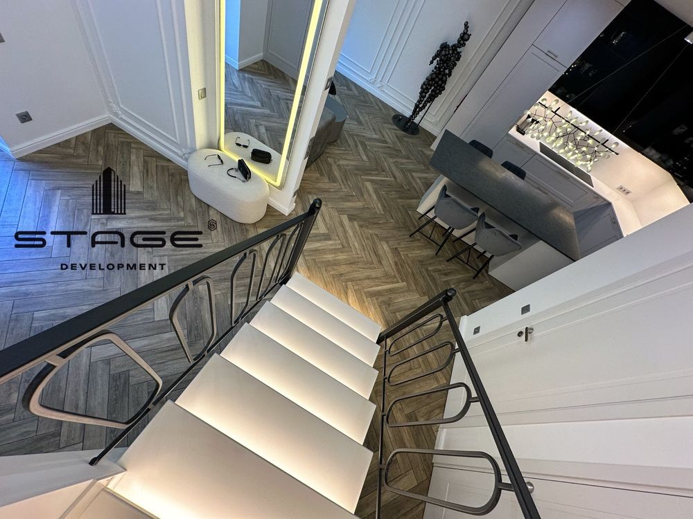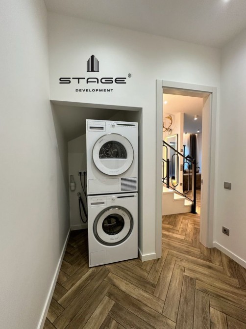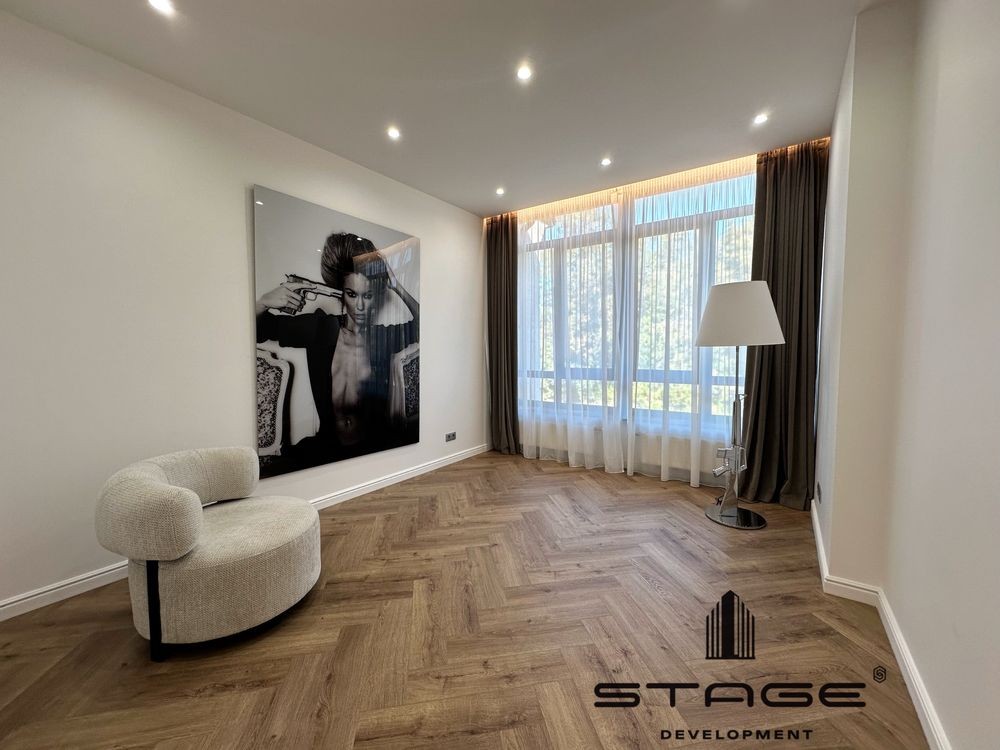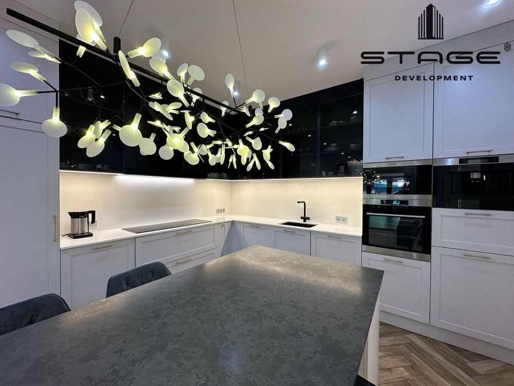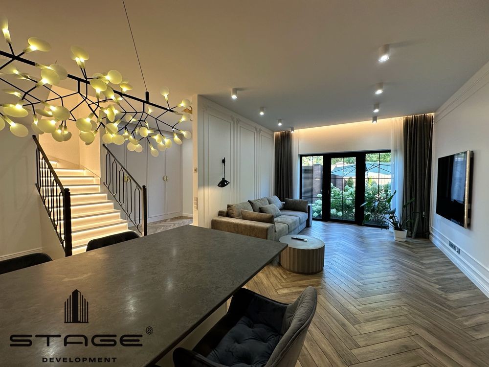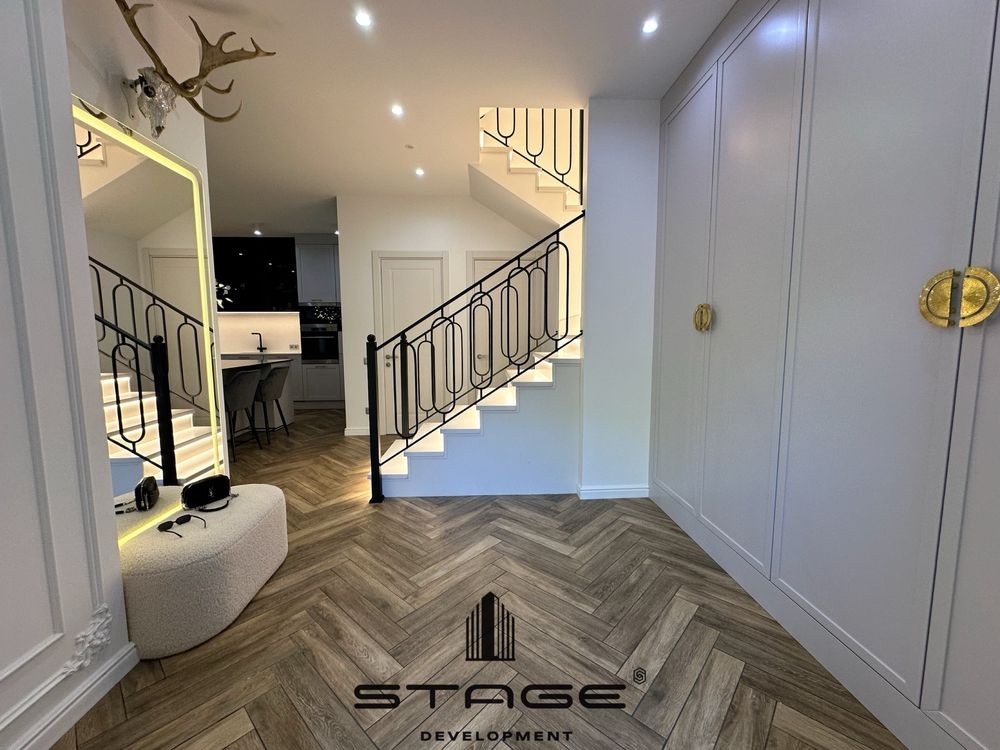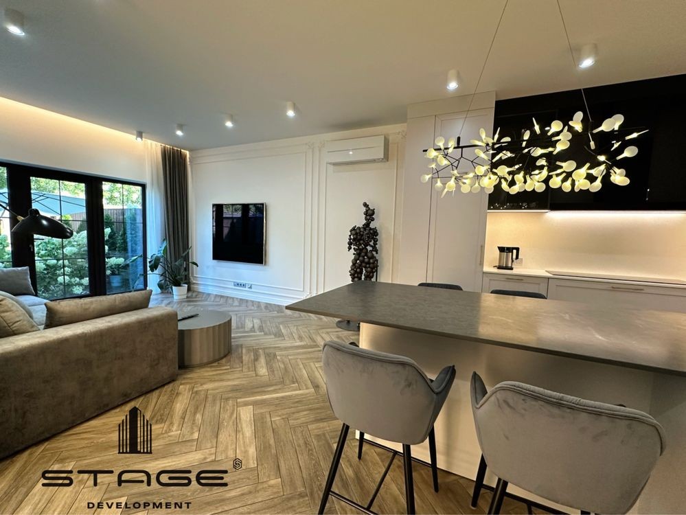 Кухня-гостиная с выходом во двор, три спальни, два санузла, постирочная, технические комнаты, просторный чердак. Современный дизайнерский ремонт, выполненный из премиальных материалов. Телевизор BangOlufsen, техника на кухне AEG, холодильник Liebherr, стиральная и сушильная машины ASCO, кондиционеры со встроенными камерами Mitsubishi, сантехника VilleroyBosh, газовый котёл Vaillant. На чердаке размещены бойлер и накопительный бак для резервного запаса воды. Есть помещение для генератора, но в нём нет необходимости - электроэнергию в кооперативе не отключают. Мраморные подоконники, каменные столешницы. В кухне-гостиной и санузел ах установлены тёплые полы.