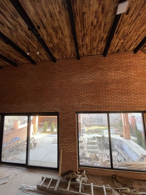 Дом 3 этажа 2020г.п. облицован красным кирпичом.