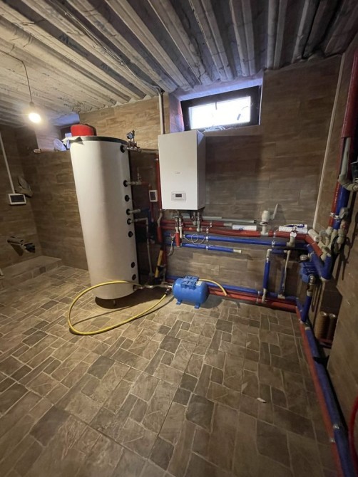 По всему дому проложен теплый пол от электрического котла, также есть проект на газовое отопление.