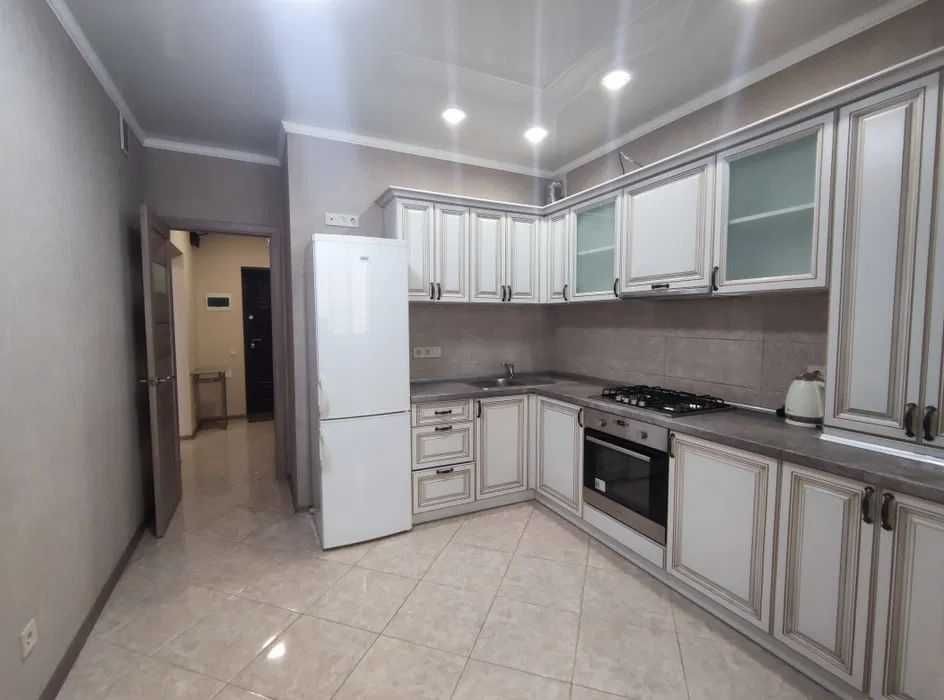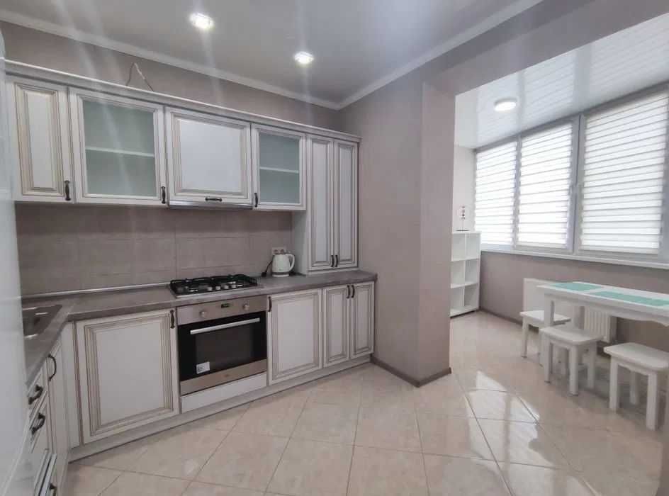 - Кухня, повністю укомплектована вбудованими кухоними меблями та побутовою технікою.