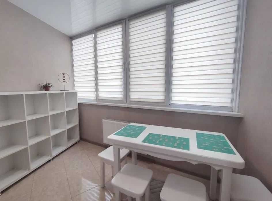 - З кухні виходить простора лоджия , на якій розмістилася обідня зона