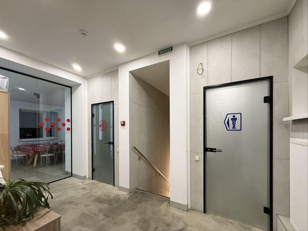 Також в офісі є загальна кухня, 3 санвузли (один з них з душовою кабіною).