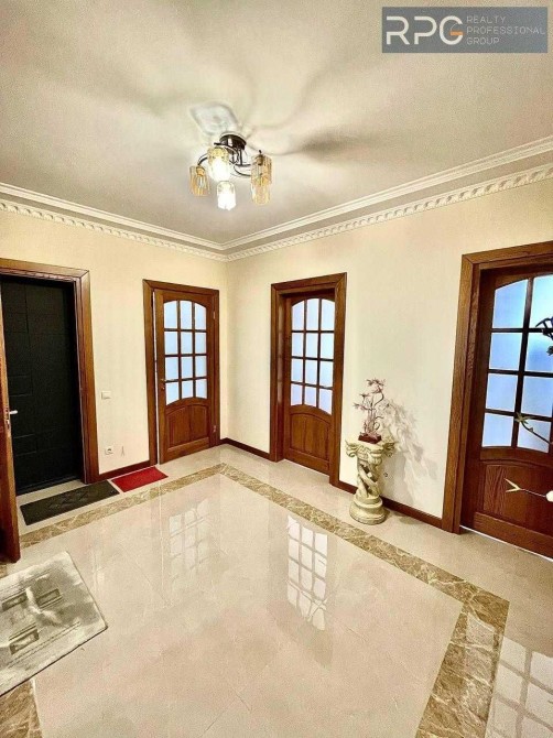 Вікна металопластикові з дерев'яними підвіконнями з натурального дерева, на підлозі паркетна дошка та широкоформатна плитка на кухні, якісна столярка з масиву дерева та дерев'яні плінтуси, точкове освітлення різного рівня, меблі та техніка від провідних виробників. Атмосферу надають дерев`янні двері в усіх кімнатах які були виконані під замовлення з цільного полотна деревини.