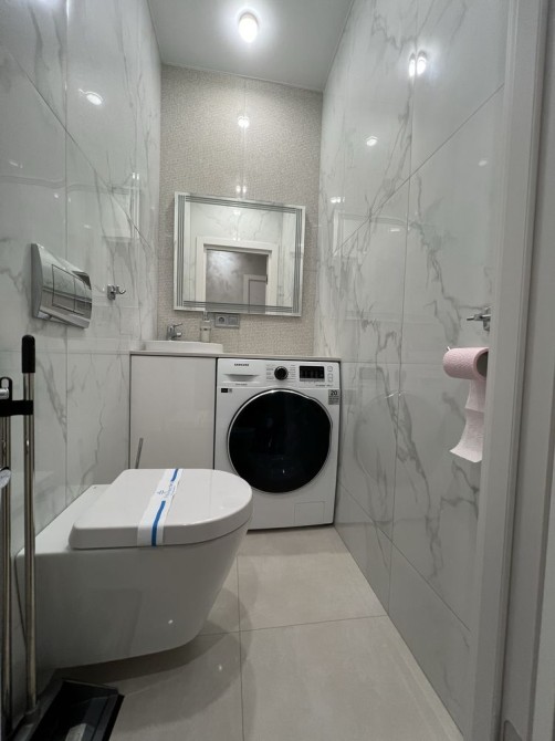 • В квартирі два санвузли: один з ванною, інший — туалет з пральною-сушильною машиною