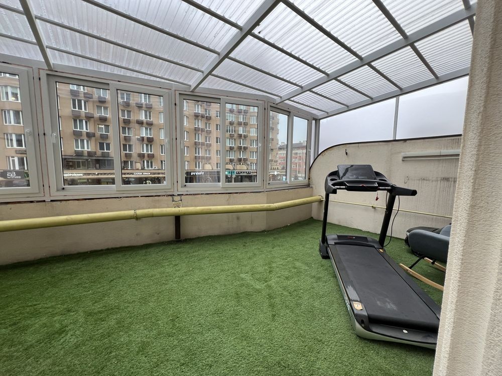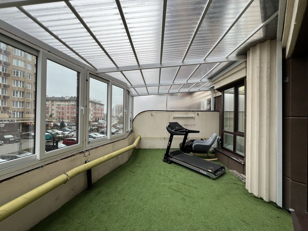 • Тераса повністю накрита та засклена, виходить на красиву алею