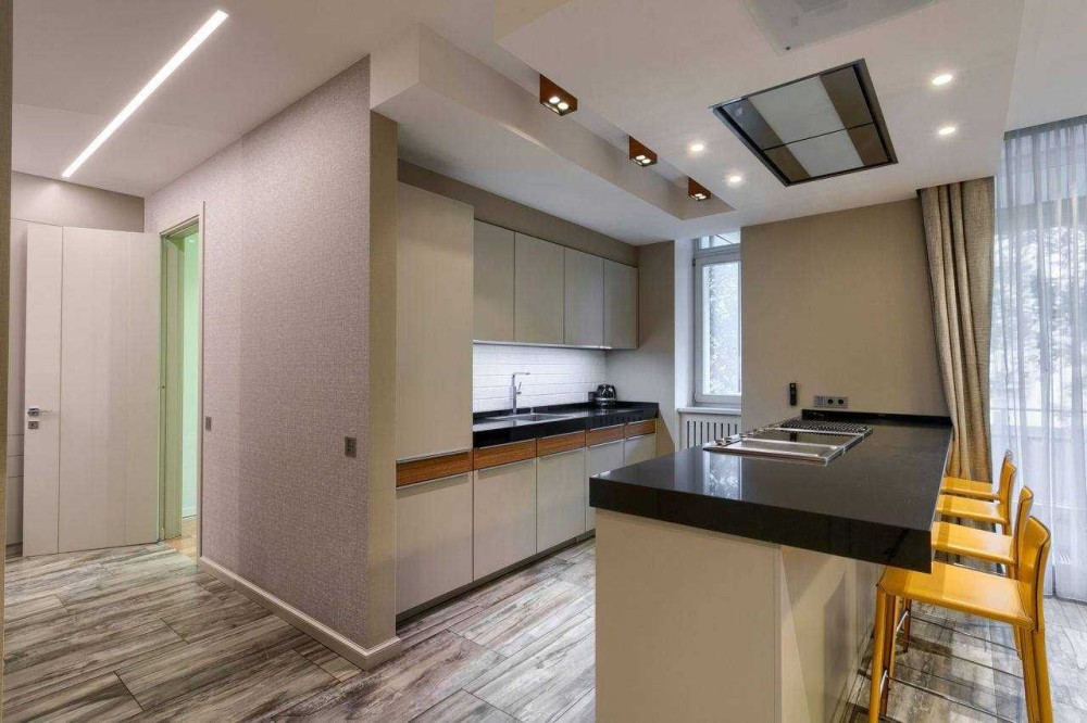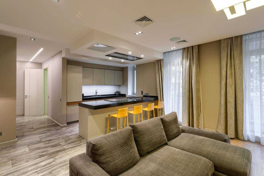 У квартирі високі стелі, великі вікна, багато світла та простору. В оздобленні використовувалися якісні матеріали, стильний сучасний дизайн поєднано з атмосферою історичного будинку.