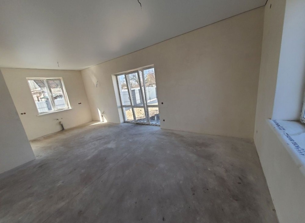 Продам Новий будинок, 82м2, 4 сотки, під чистову, підігрів підлоги, стяжка, розводка електрики, сантехніки. Натяжна стеля. Скважина, вигрібна яма. Територія огорожена. Стіни шпаклівка. 3ри окремі кімнати, велика кухня студио. Зовнішнє утеплення 10см пінопластом. Поряд 6та школа. Магазин. Музична школа. Зупинка транспорта. Ціна 75.000дол. Без Комісії