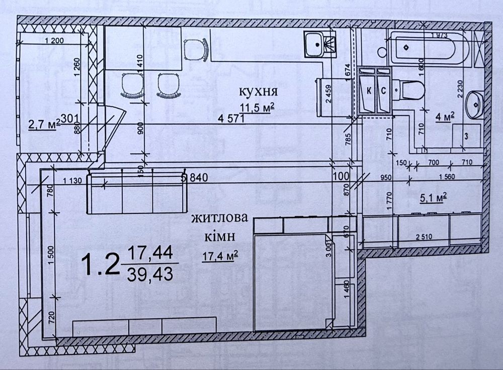 • Загальна площа 39.43 м2
