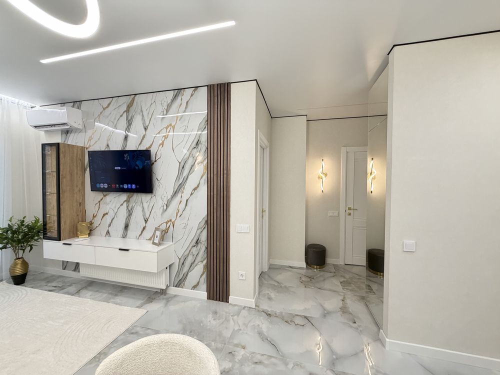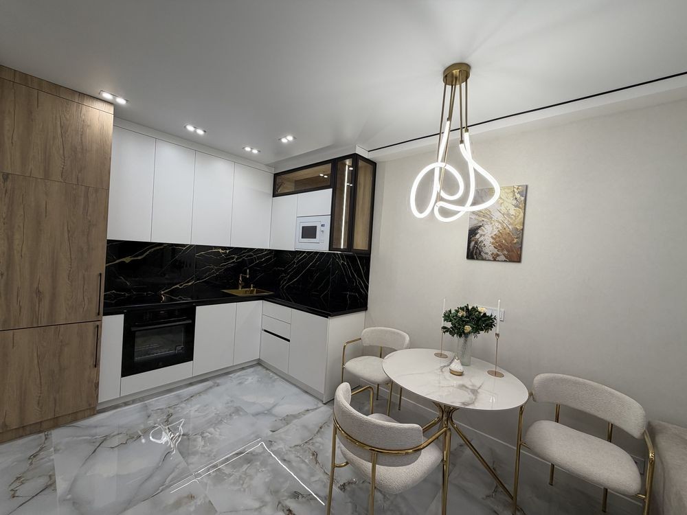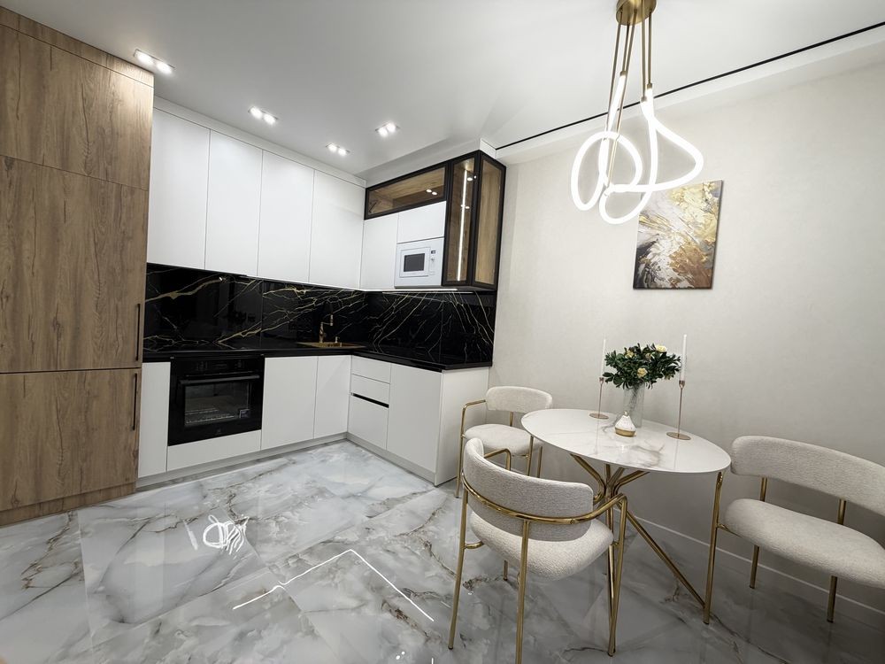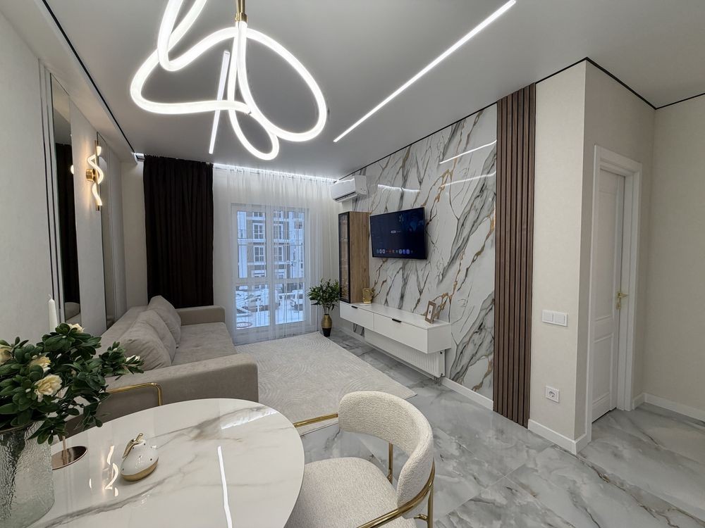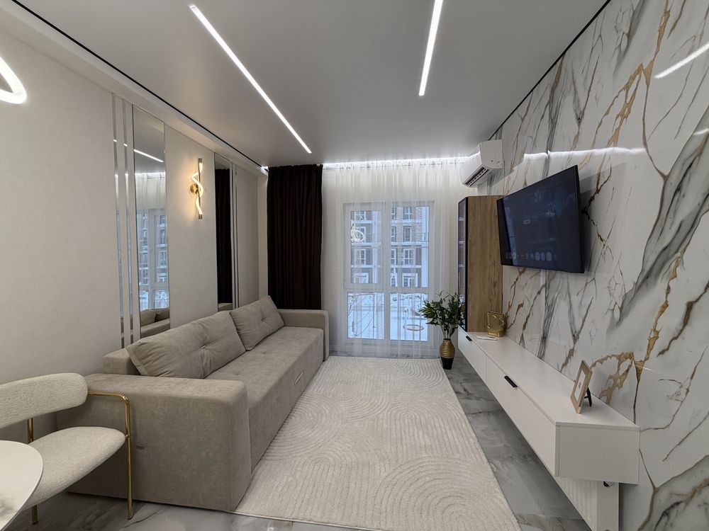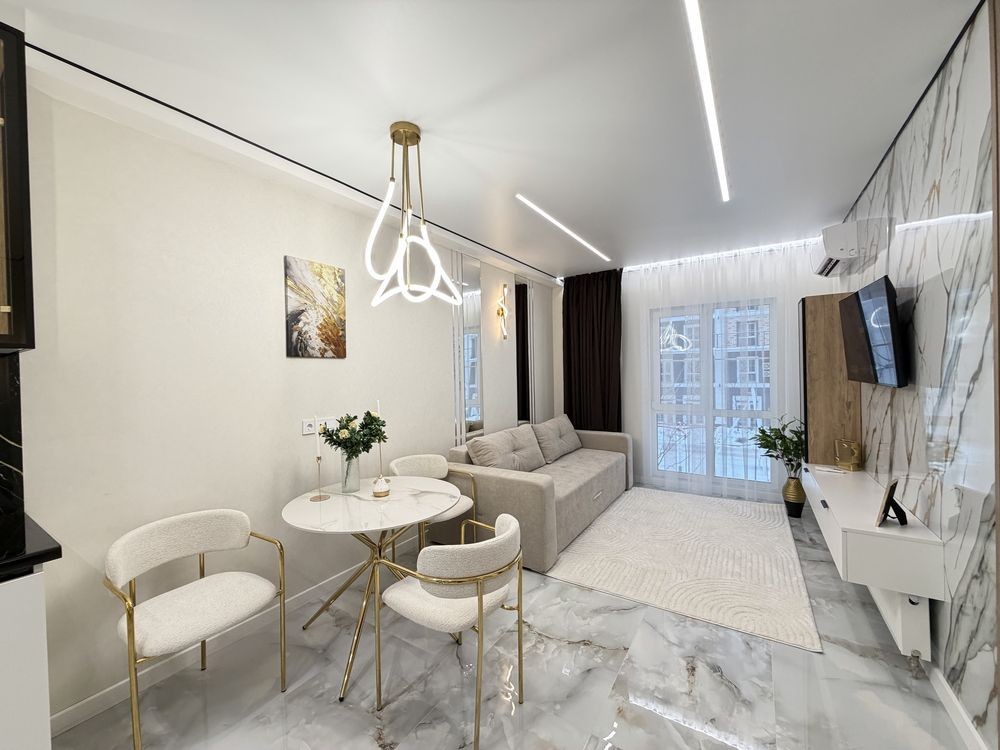Квартира повністю укомплектована меблями з дорогих матеріалів та якісною побутовою технікою. Формат «заходь і живи».