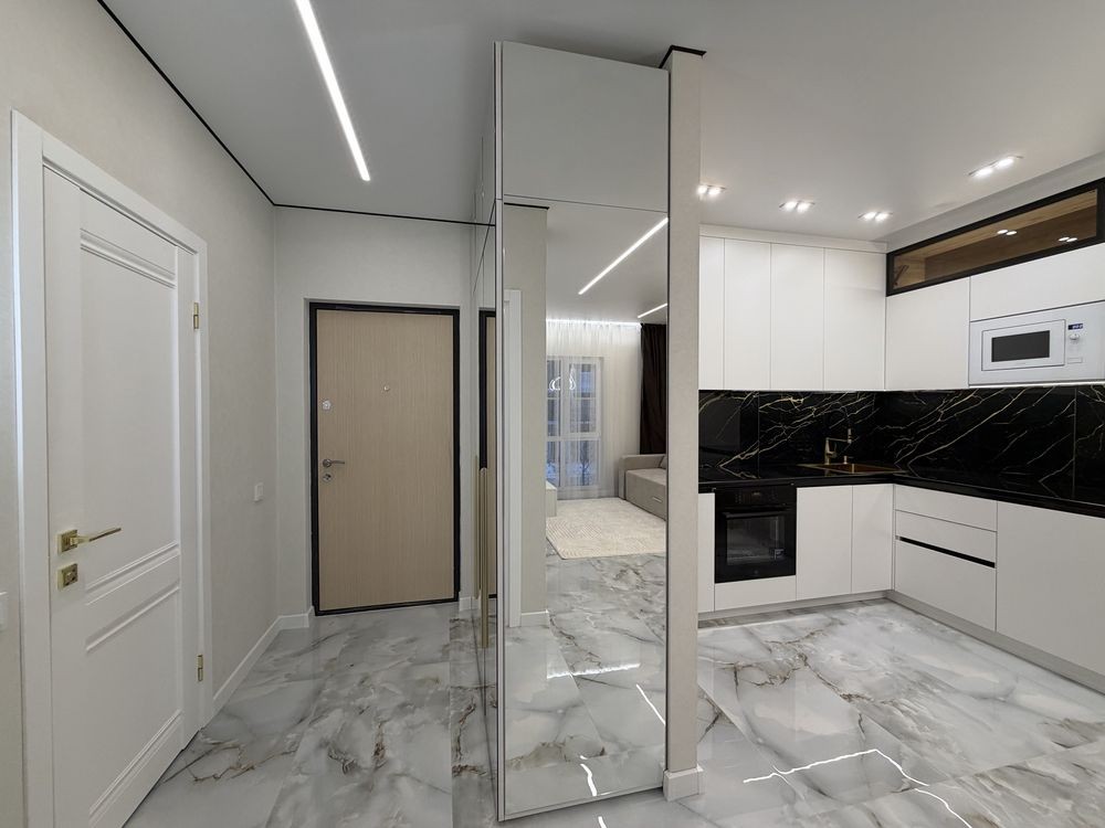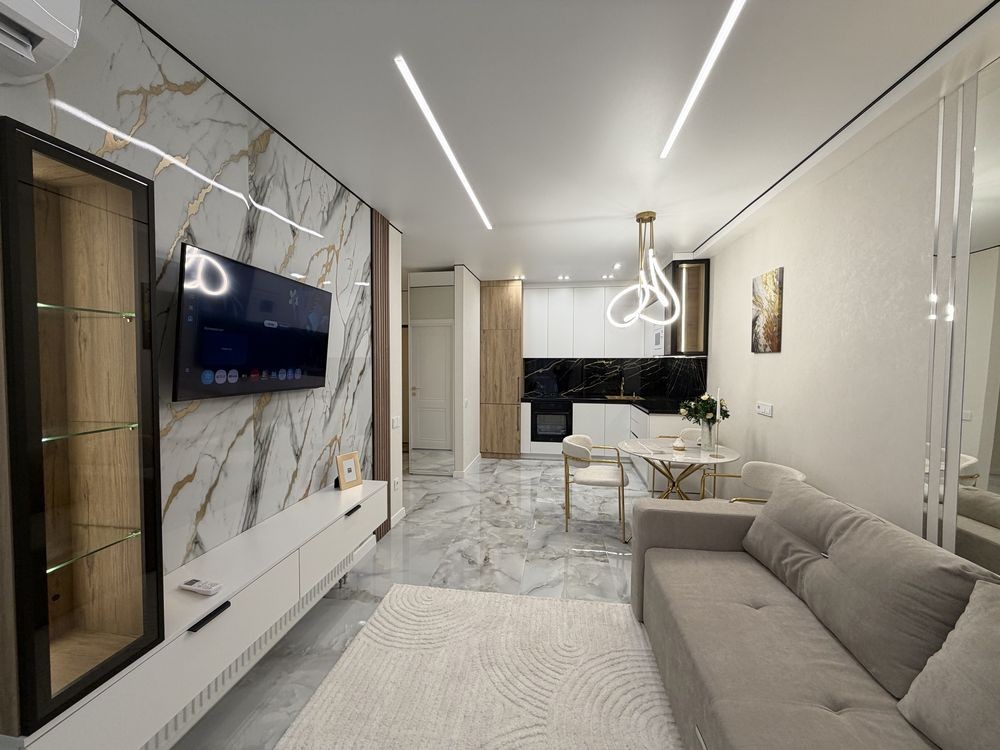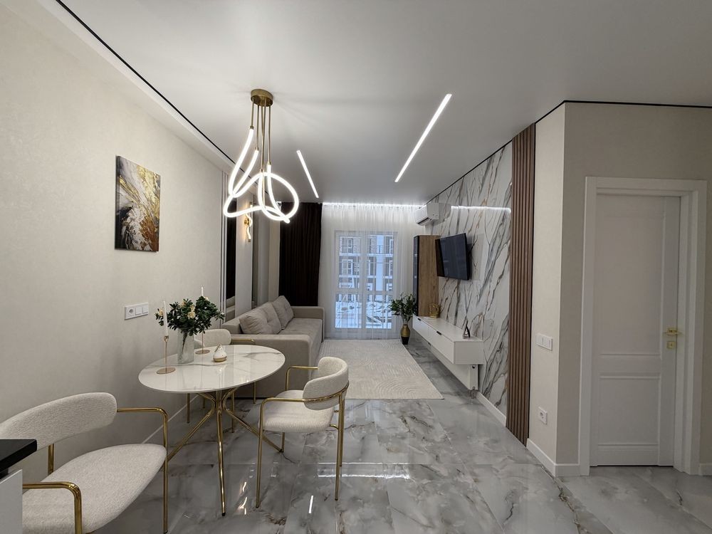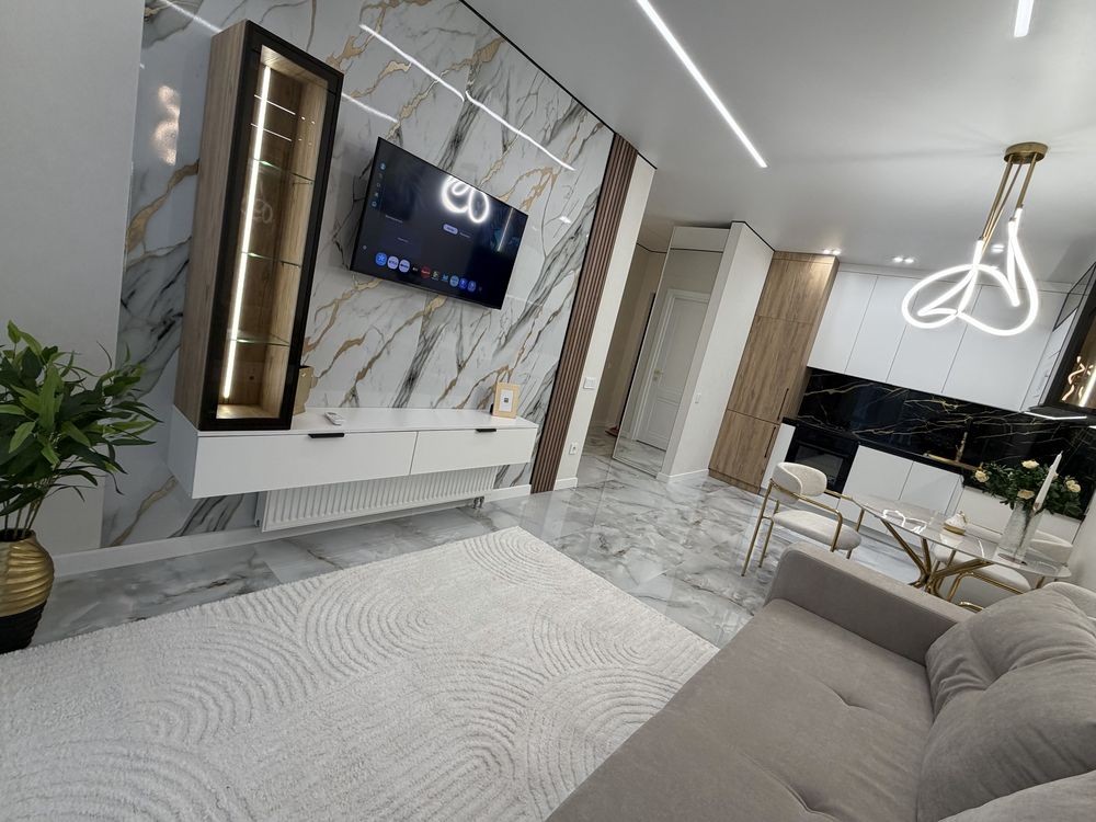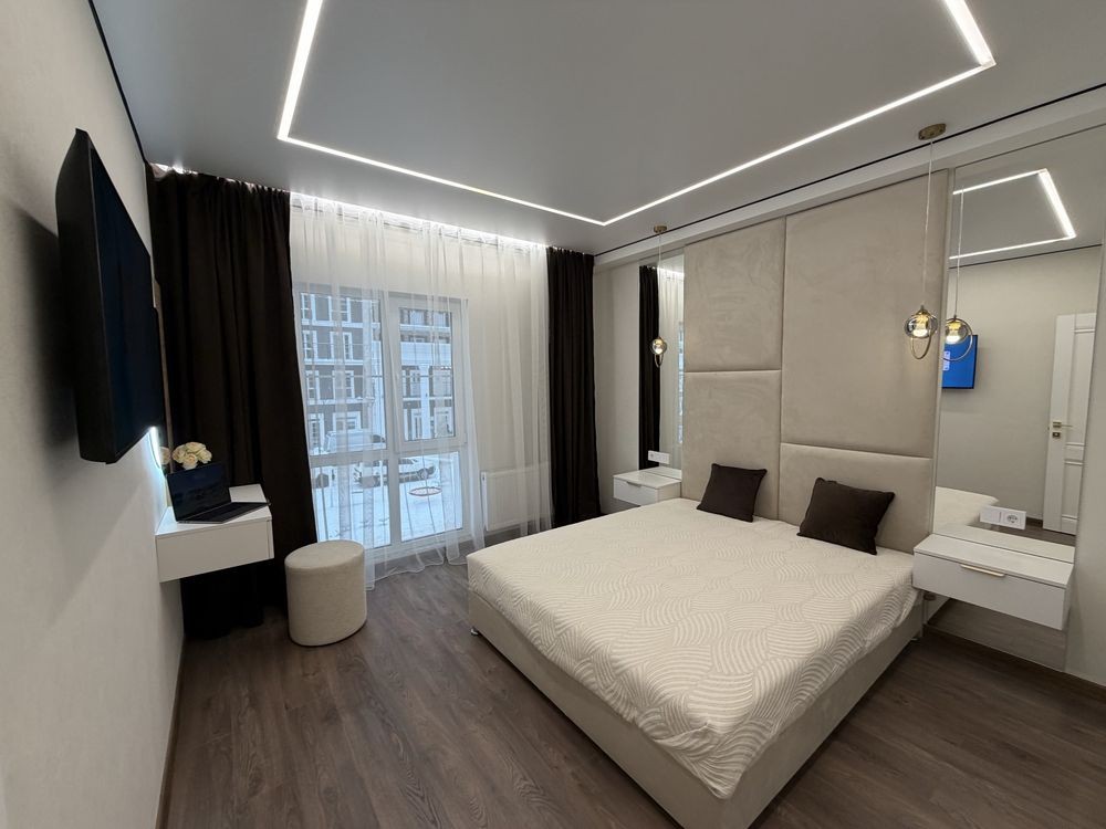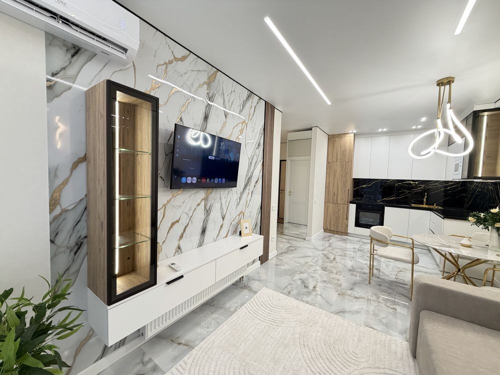 Квартира повністю укомплектована меблями з дорогих матеріалів та якісною побутовою технікою. Формат «заходь і живи».