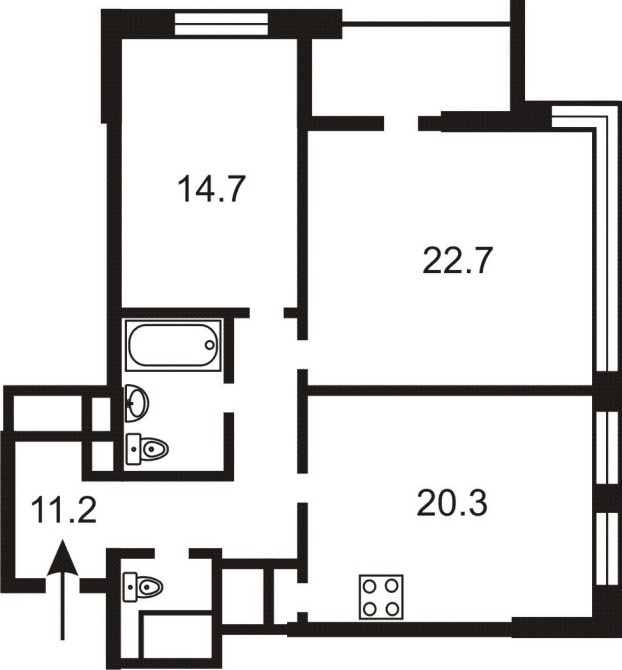 Кімната 1 - 14,7 кв.м., кімната 2 - 22,7 кв.м., передпокій - 11,2 кв.м.