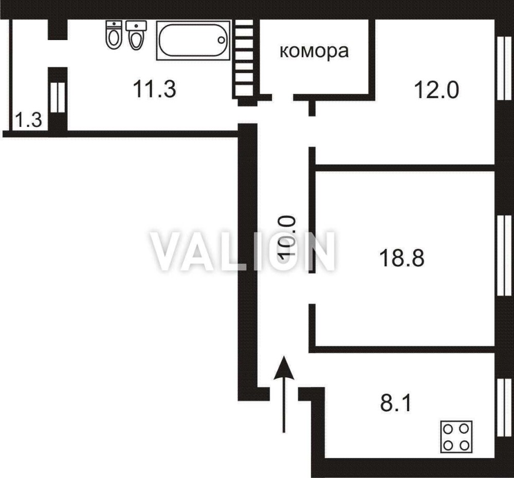 • Площа кухні 8.1 м2