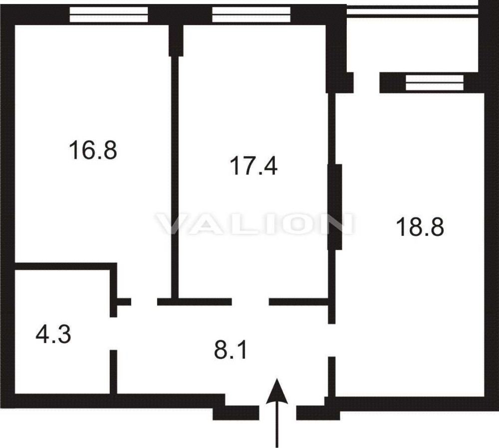 Общая площадь 45,5 кв.м