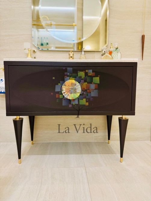 Кухня виконана з матеріалу МДФ, оснащена якісною фурнітурою від Blum. Стільниця виготовлена з натурального мармуру, що додає інтер'єру розкішного вигляду. Для забезпечення чистоти води встановлено фільтр зі зворотним осмосом. Додатково на кухні розміщено духову шафу SMEG і холодильник, які відповідають високим стандартам якості та функціональності.
