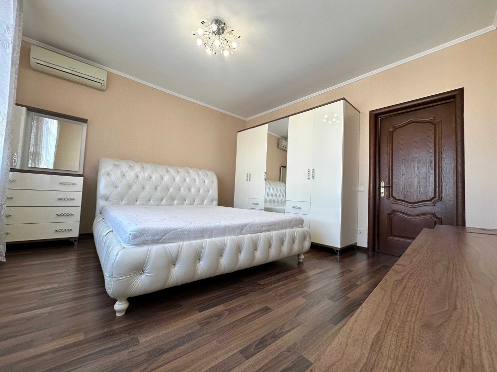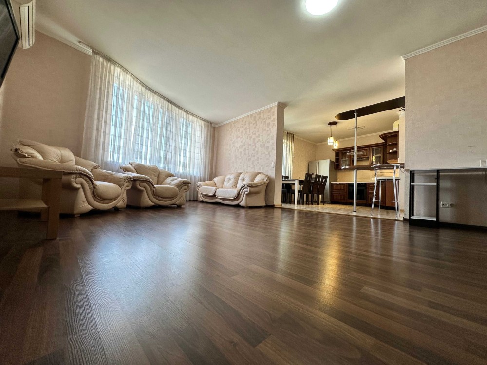 Євроремонт, кухня вітальня, дві спальні, три санвузли, балкон розділений на закриту та відкриту зону. Вбудована кухня та вся побутова техніка світових виробників. Повністю укомплектована меблями. Кондиціонери, місткі шафи. На підлозі ламінат/плитка.