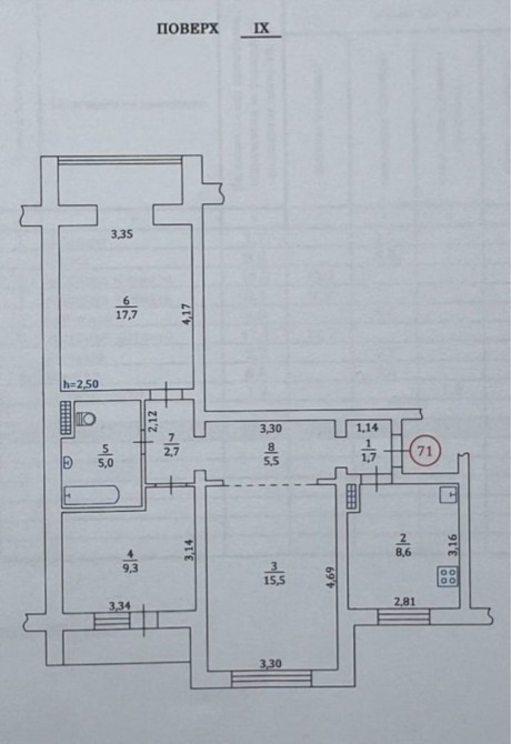 Квартира загальною площею 70 кв.м. і з якісним оновленим ремонтом на 9 поверсі 9 поверхового панельного будинку.