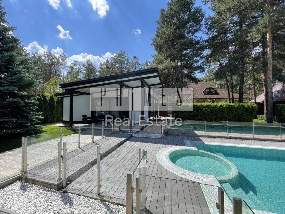 Високоякісний дизайнерський ремонт з меблями і технікою кращих світових виробників, 4 спальні зі своїми вбиральнями і ваннами, вітальня з каміном і виходом на терасу, система розумний будинок, мультирум, броньовані склопакети, двері і вікна з електроприводом, система відеоспостереження, тепловий насос, диз генератор, тераса, мангал, тандир, зона відпочинку.
