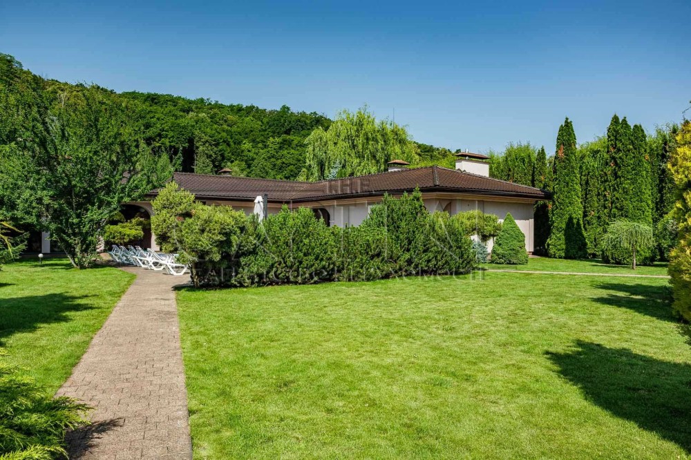 Своя упорядкована набережна, ландшафтний дизайн території, власний фонтан, автоматичний полив, вночі освітлення території.