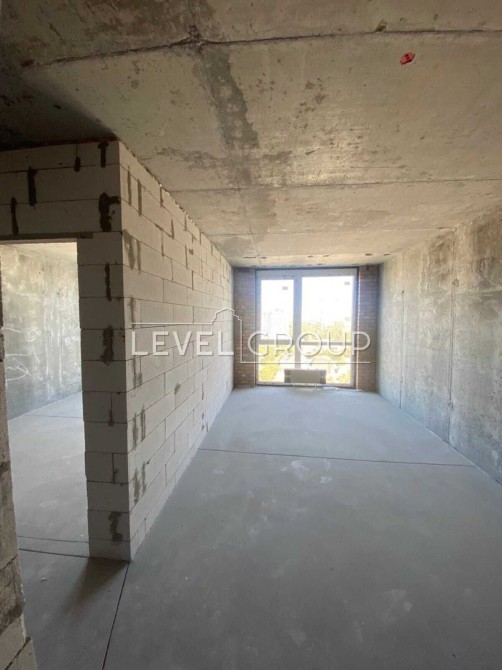 Квартира має великий хол, сумісний санвузол, простору кухню-вітальню та панорамні вікна з видом на Дніпро.