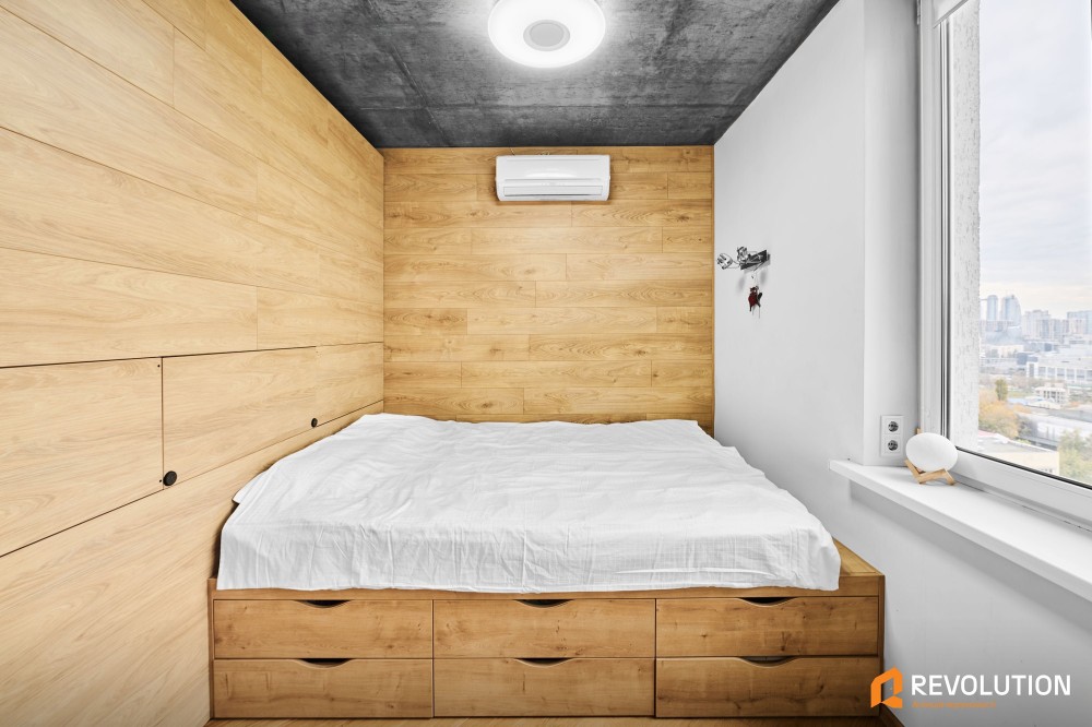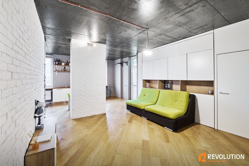 Квартира має окрему кімнату та простору кухню-вітальну