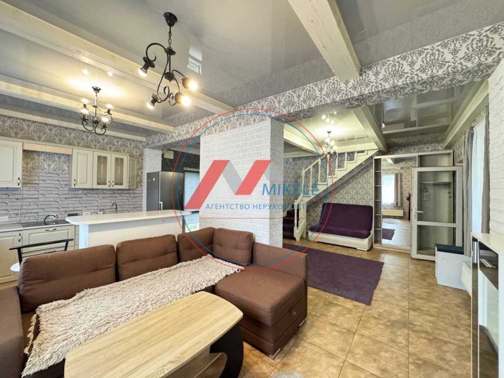 1-й поверх гостьова кімната розмежована з кухнею , санвузол і задній вихід на подвірʼя.