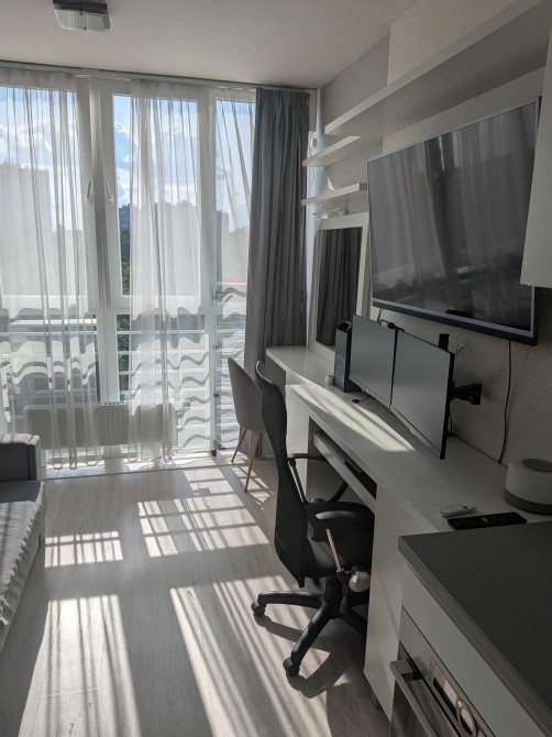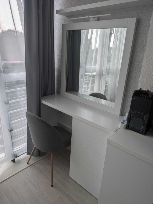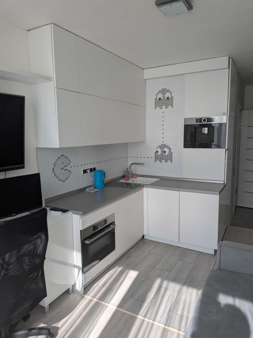 Обладнання • меблі • зручності: телевізор • пральна машина • посудомийна машина • ванна • кавомашина • електрична плита • духова шафа • мікрохвильова піч • Вбудована кухня • диван • холодильник • лічильник на електрику • відеонагляд • кондиціонер • електрика • витяжка • сушильна машина • інтернет • письмовий стіл • фільтр для води • двоспальне ліжко