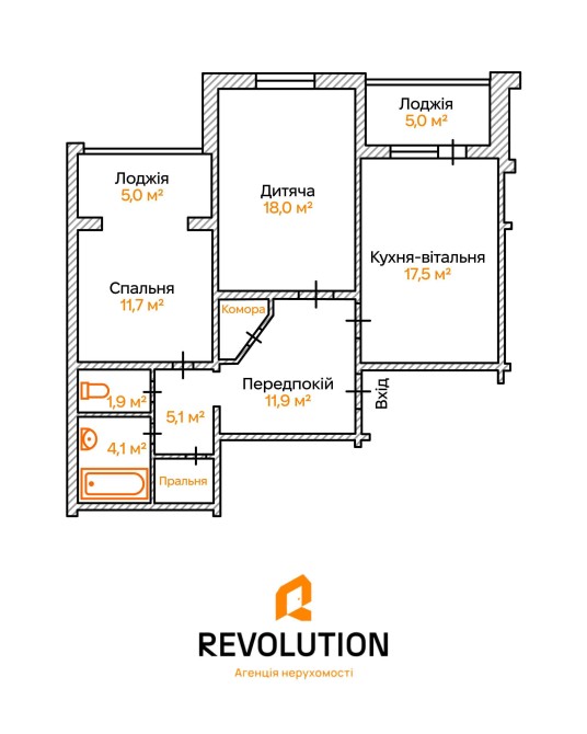 - Площа: 80.2 м² ( житлова 34.7 м² );