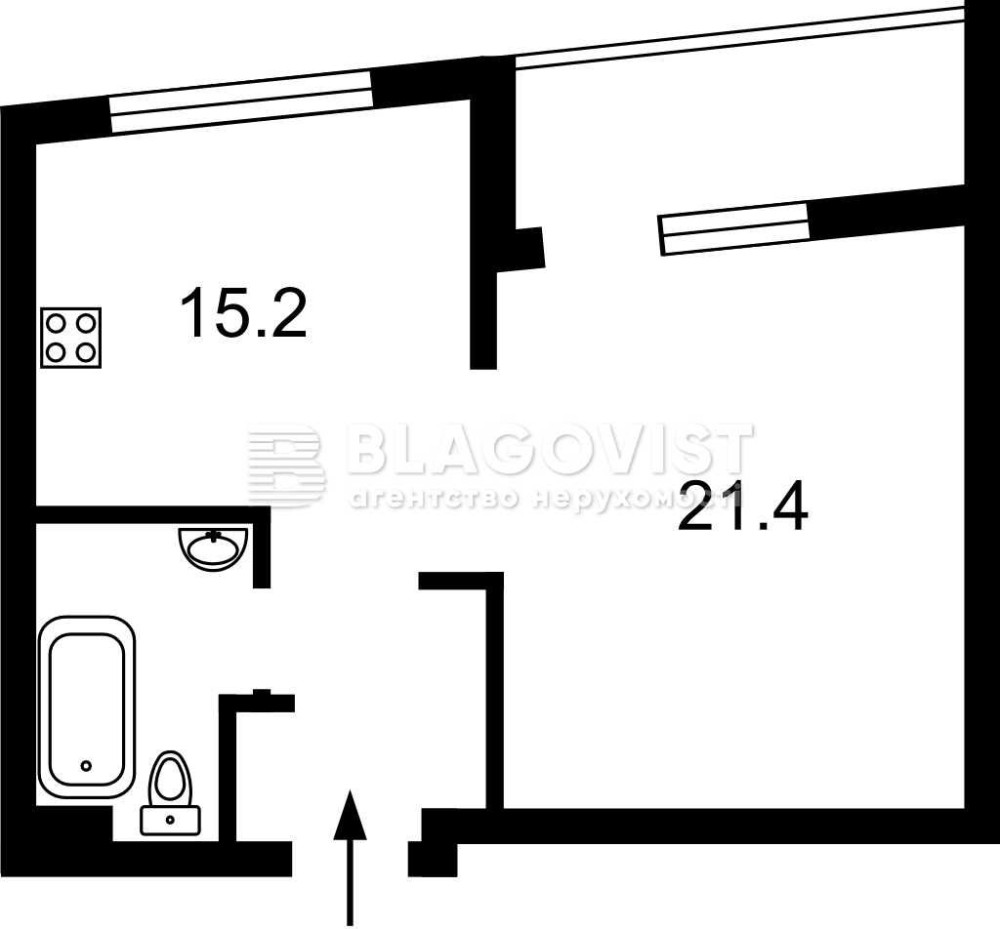 • Площа кухні 15.2 м2