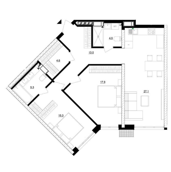 - Велика кухня-вітальня (27 кв.м)